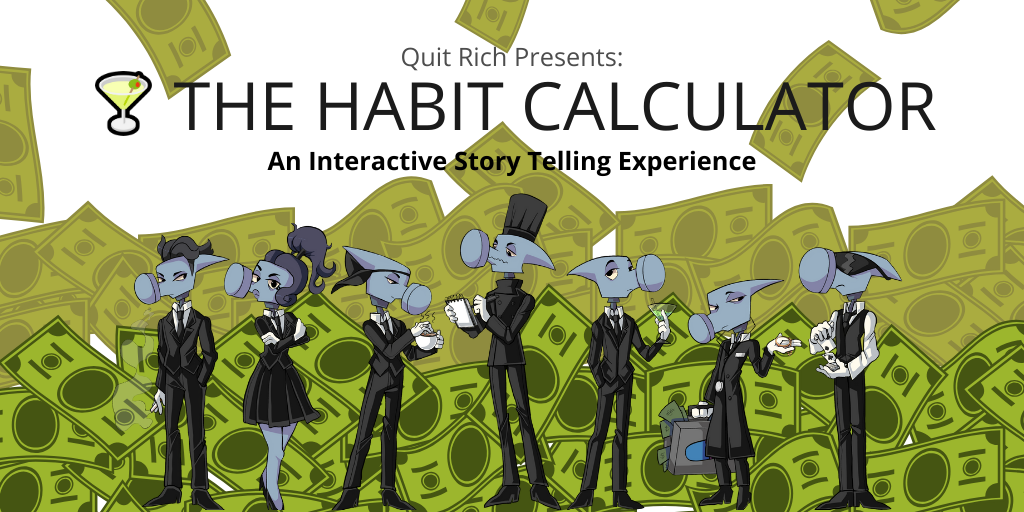 The Habit Calculator is an interactive story telling experience guided by your own personal piggy bank. You will be introduced to several villains, the Habit Hammers, who are setting out to smash all the piggy banks of the world. If knowing is half the battle we’re going to get you there. The rest is up to you!
